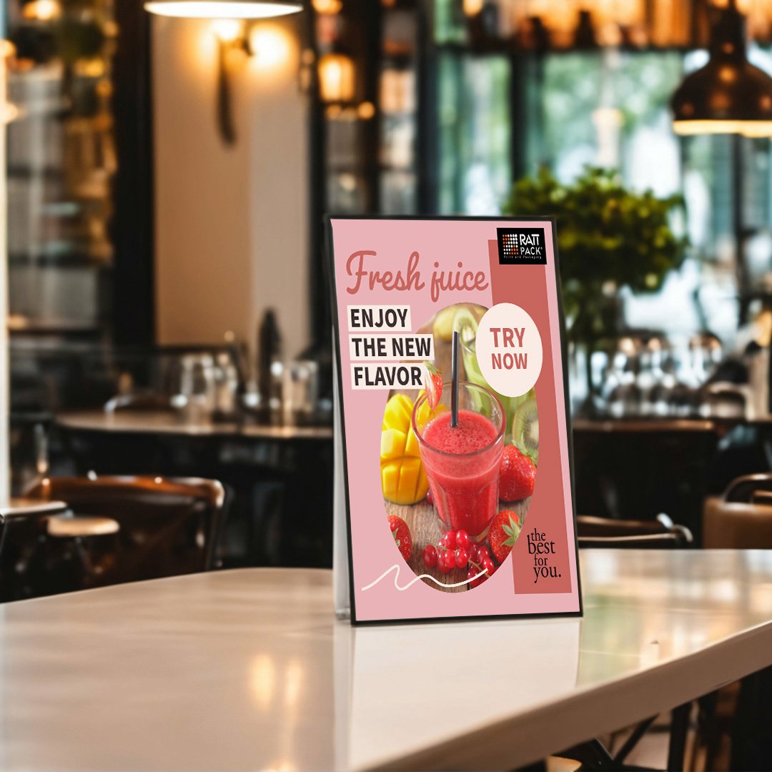 Présentoir de table : idéal pour présenter les offres du jour, les événements ou les actions spéciales directement à la table des clients.